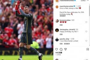 曼联官方社媒晒出德赫亚效力球队时期的照片,配文:“一日红魔,终生红魔,德赫亚今天迎来了35岁生日。”